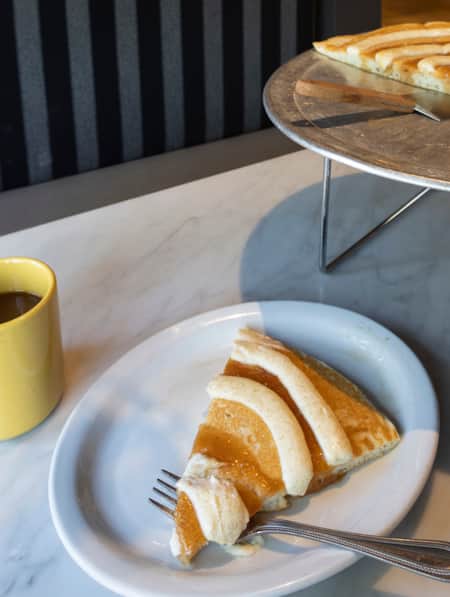 Accompanied by the fresh bread Ramsley bakes daily in an outdoor brick oven, we try samples from the Mesa Farm Market’s seasonally changing offerings of yogurt, fresh chèvre and that green-bright zingy feta.