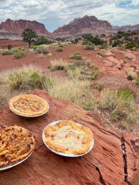 Remnants of an old corral and stone fireplace are all that are said to be left of Robbers Roost today. Over one hundred years ago, outlaws used the Roost as one of several hideouts along the Outlaw Trail — a series of trails and safe houses that ran from Texas to Montana. Butch Cassidy and his crew of bandits, The Wild Bunch, were known to frequent Robbers Roost in Utah after heists. And I wanted to find it.