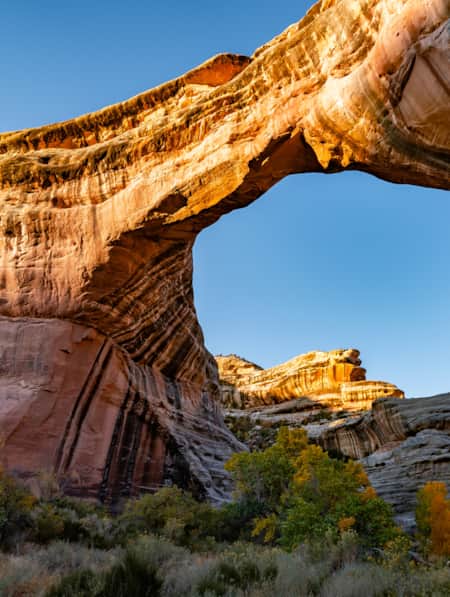 A favorite route into the canyon is Kane Gulch. While it is not the shortest approach, it is one of the most scenic routes, as you enter into the high-cliffed gulch within a mile of the trailhead. This hike can be accomplished as a long, in-and-out day trip, or looped with the Todie Canyon section for an overnight backpacking experience. Other popular side canyons include Bullet, Coyote, and Sheik.