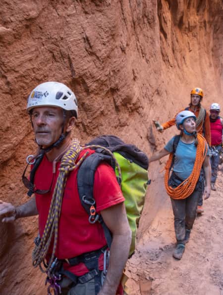 Today completes a full-day backcountry loop through a defining feature of Capitol Reef: the Waterpocket Fold. Turn down the All-American Road Scenic Byway 12 and consider a stop to explore the expansive timbered plateau of Boulder Mountain. At Boulder, veer east down the Burr Trail. It starts paved then turns to gravel before dropping down some eye-popping switchbacks into the national park. Turn north on Notom Road to complete your backcountry tour of Capitol Reef. Back on S.R. 24 you’ll head northeast toward the San Rafael Swell’s introduction to canyoneering: Little Wild Horse and Ding & Dang canyons.